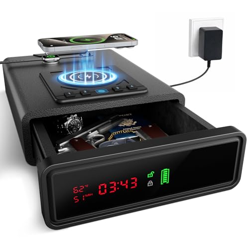 This model is specifically designed for handgun owners who prioritize fast access without compromising safety. Unlike traditional key-based safes that slow you down during critical moments, this biometric safe uses advanced fingerprint recognition technology to unlock within seconds. It also integrates a digital alarm clock display and wireless charging, making it a multifunctional bedside device rather than just a storage box.