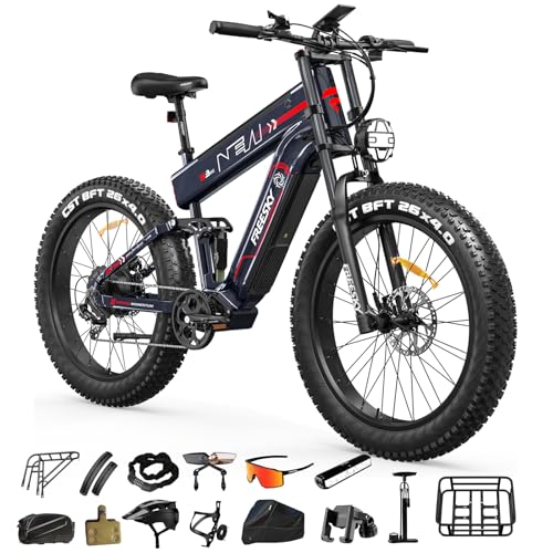 The 26-inch fat tires provide excellent grip on sand, snow, gravel, and uneven trails. Combined with the full suspension system, riders experience a smooth and controlled ride even on challenging terrain.