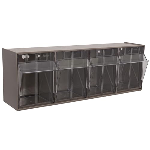 The unit includes four individual tilt-out compartments that allow quick sorting and retrieval. Each bin is transparent enough to identify contents easily, reducing unnecessary searching.
