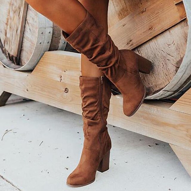 Gender: Women's Category: Boots Style: Elegant, Vintage Type: Mid Calf Boots Occasion: Office, Outdoor, Daily Activity: Walking Shoes Toe Shape: Round Toe Upper Materials: Suede Outsole Materials: Rubber Heel Height(inch): 2-3 Embellishment: Buckle Pattern: Solid Colored Season: Winter, Fall Foot Length (cm): US5.5 / EU36 / UK3.5 / CN35:22.5;US6 / EU36 / UK4 / CN36:23;US6.5-7 / EU37 / UK4.5-5 / CN37:23.5;US7.5 / EU38 / UK5.5 / CN38:24;US8 / EU39 / UK6 / CN39:24.5;US8.5 / EU39 / UK6.5 / CN40:25;US9 / EU40 / UK7 / CN41:25.5;US9.5-10 / EU41 / UK7.5-8 / CN42:26;US10.5 / EU42 / UK8.5 / CN43:26.5 Foot Width (cm): US5.5 / EU36 / UK3.5 / CN35:22.5;US6 / EU36 / UK4 / CN36:23;US6.5-7 / EU37 / UK4.5-5 / CN37:23.5;US7.5 / EU38 / UK5.5 / CN38:24;US8 / EU39 / UK6 / CN39:24.5;US8.5 / EU39 / UK6.5 / CN40:25;US9 / EU40 / UK7 / CN41:25.5;US9.5-10 / EU41 / UK7.5-8 / CN42:26;US10.5 / EU42 / UK8.5 / CN43:26.5 Closure Type: Zipper 2023 Trends: Heel Boots, Slouchy Boots, Suede Shoes Heel Type: Kitten Heel | Buy Now | |